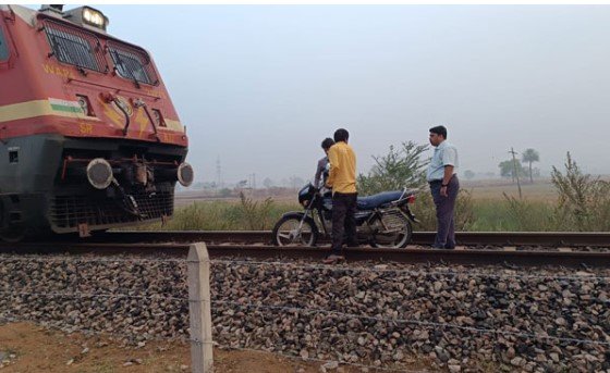 Hyderabad: A man rode his bike along the railway track towards an oncoming train heading to Tirupati near the Daryapur railway gate in Navipet mandal of Nizamabad district. The timely intervention of the gatekeeper saved the man’s life.