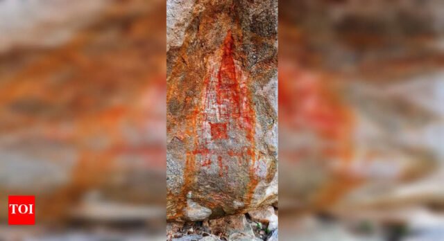 Hyderabad: A new rock art site, believed to be from the medieval period, has been discovered at Peddagutta in Jeenugarala village of Mahabubnagar district.The red pigment paintings, found by Kavali Chandrakanth, a member of the Kotha Telanganacharitrabrundam, show a sequence that includes a human figure at the bottom, a square turtle figure above and vertical ladder-like lines near a chariot-shaped structure when viewed from bottom to top.According to Bandi Muralidhar Reddy and Sriramoju Haragopal, fellow researchers from the same historical group, these paintings belong to the historical period, specifically the Middle Ages. The markings, in which one figure appears to be embedded in another, suggests that the site may once have served as a sacred space for a local community.Signs of early settlements near rock artAlongside the painted rocks, remnants of ancient human habitation have been observed nearby, including burial traces and early settlements.Chandrakanth notes that further exploration could lead to significant insights into prehistoric human activity in the region.Telangana is home to over a hundred rock art sites, many dating back to the Mesolithic period. Often created using natural dyes mixed with tree resins and animal fats, these artworks depict daily life — hunting, dancing and ritual scenes — on rock outcrops, cave ceilings and shelters. Unlike painted works, bruisings were carved with stone tools.Notable sites in areas such as Pandavulagutta have even revealed ‘x-ray’ style paintings depicting internal organs, a rare artistic expression in prehistoric rock art. The newly discovered Jeenugarala site now adds another piece to Telangana’s growing archive of ancient visual culture.