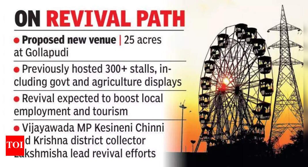 Vijayawada: The Krishna Industrial and Agricultural Exhibition Society (KIAES) is preparing to relaunch the iconic Vijayawada exhibition from the upcoming Dasara season, after a gap of 13 years. Once considered a major crowd-puller akin to Hyderabad’s Nampally exhibition, this annual event was held at Swarajya Maidan (PWD Grounds) until 2013.The exhibition, known for its blend of commerce, culture, and entertainment, hosted over 300 stalls representing various govt departments, agricultural awareness units, and plant nurseries. It served as both a commercial hub and a recreational space for families and tourists, drawing large footfalls every summer.To revive the tradition, MP Kesineni Sivanath (Chinni), along with committee members, met with Krishna district collector Dr Lakshmisha on Wednesday. They proposed setting up the exhibition on 25 acres in the Gollapudi area. Plans are in motion to align the reopening with the upcoming Dasara celebrations to maximise public engagement.MP Sivanath highlighted the exhibition’s legacy, noting how it once served as a major employment and entertainment source for locals. “We want to bring back that spirit and ensure lakhs of people who visit Vijayawada dring Dasara also experience the fun and culture of this event,” he said.Collector Lakshmisha said that they already audited the KIEAS and everything will be done with utmost transparency under the leadership of NTR district collector. KIEAS is eyeing to attract popular brands to set up their stalls in the exhibition and at the same time give top priority to local artisans and promotion of handicrafts.Locals have welcomed the move, hoping it will not only revive a beloved city tradition but also boost tourism and create seasonal employment. Many believe the return of the exhibition will add vibrancy to Vijayawada, a key urban centre in the Amaravati region.