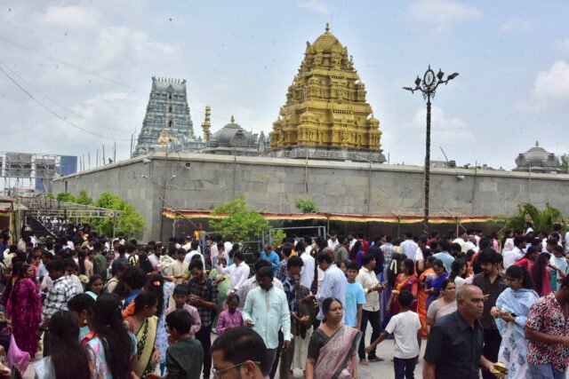 Ganesh, a 30 year old accountant from Borabanda, visited the TTD temple temple along with his wife Vidyarani and daughter Srinidhi. “We come here regularly on Saturdays and Sundays. Today the crowd was heavy, but everything went smoothly,” he said.