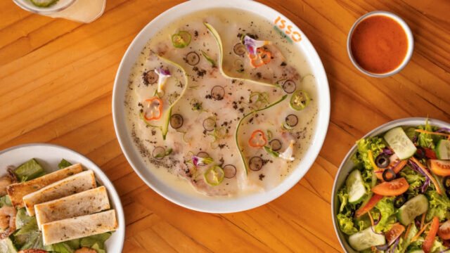 For its Indian debut, ISSO has designed a thoughtfully curated five-course meal that traverses the rich and fiery landscape of Sri Lankan cuisine. The experience begins with a Dynamite Shrimp Salad, featuring crispy, tempura-battered prawns in ISSO’s signature spicy sauce, served with avocado, cherry tomatoes, cucumber, and a zesty citrus vinaigrette. The cold starter is a refined Prawn Carpaccio, delicately dressed with olive oil, powdered black olives, and grape dressing. The hot starter, Cuttlefish Fritto With Tamarind Glaze, is crisp and golden, elevated with a sweet tamarind glaze.
