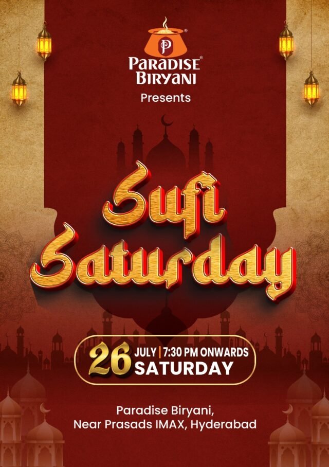 Paradise Biryani is set to host a soulful musical evening with a special Sufi Saturday featuring the band Roohaniat on July 26 at its outlet near Prasads IMAX, Hyderabad. The event, starting at 7:30 PM, promises a blend of spiritual and cinematic sounds, offering a unique experience to food lovers and music enthusiasts alike.