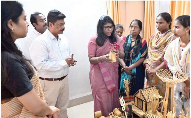 Eluru: District collector K Vetriselvi said that a training programme will be organised soon to improve the livelihood of tribal self-help group women. On Monday, along with joint collector P Dhatri Reddy, she inspected the products made by some tribal women from bamboo sticks at the Collectorate. She said that the administration wants to start training in Puli Ramanna Gudem for the handicraft artisan who make dolls from bamboo sticks in Puli Ramanna Gudem and Kotaramachandrapuram villages of Buttaigudem mandal.