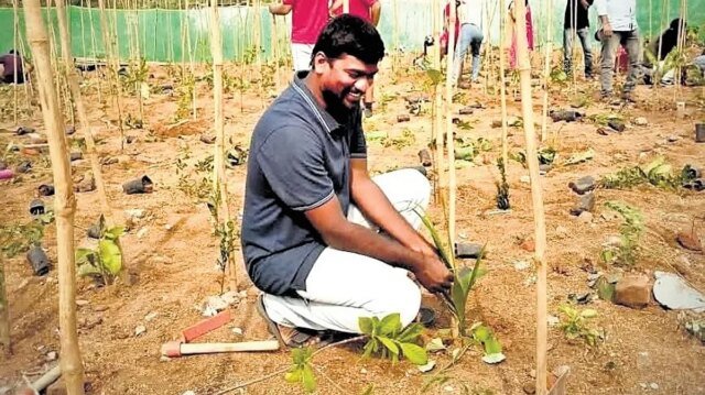 HYDERABAD: Environmental enthusiast Mahesh Talari uses the Miyawaki plantation method to turn unused plots into green lands. Till now, he plants more than 50,000 saplings through his non-profit Ever Green Again.