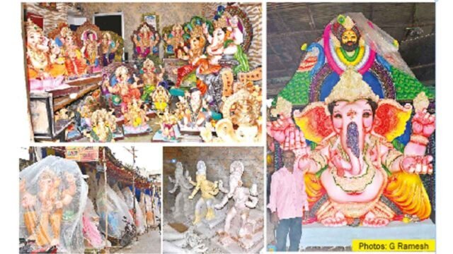 Hyderabad: Rows of Ganesh idols painted in radiant shades of yellow, blue, red, green, and gold are capturing the festive spirit across the city as Ganesh Chaturthi approaches. Idol makers are working day and night to bring unique models to life, blending tradition with fresh creativity.