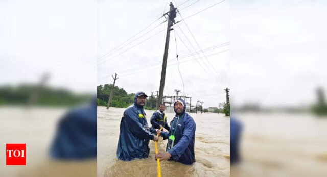 Hyderabad: With floodwaters inundating several 33 kV substations and uprooting hundreds of poles, power supply was disrupted in many villages under Telangana Southern and Northern Power Distribution Companies. Restoration efforts are underway across affected districts, including Medak and Kamareddy.TGSPDCL chairman and managing director Musharraf Faruqui said floods damaged 1,357 poles and 280 transformers in southern discom areas. Medak district suffered the worst impact, with water entering substations and affecting 11 feeders of 33 kV, 175 feeders of 11 kV, 262 transformers, and 971 poles. Hundreds of kilometres of conductors and lines were also damaged. Districts such as Nalgonda, Gadwal, Yadadri, Sangareddy, and Narayanpet also reported heavy losses. Across the discom’s jurisdiction, 39 high-tension feeders, 296 low-tension feeders, 280 transformers, and 1,357 poles were affected. TGNPDCL CMD Karnati Varun Reddy said Kamareddy, Adilabad, Nirmal, and Nizamabad circles reported 108 collapsed poles and 21 damaged transformers. Of these, 87 poles and 17 transformers have been restored. More than 80 transformers were submerged in floods. Officials said staff have been working round-the-clock despite heavy rains and a festival day, even swimming across streams and climbing poles to restore supply. In Medak, power was disrupted in 15 villages, but supply was restored in 10 by Wednesday night. On Thursday, linemen waded into a river at Rajipet village to repair a feeder and successfully restored power. Both discoms assured that efforts are continuing on a war-footing until all affected areas are re-energised.