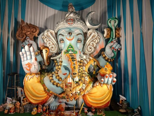 He said he got the idea of making ‘Mahakal Ganesh’ while visiting Prayagraj to attend Maha Kumbh Mela. “We visited popular temples in Kasi and Ujjain and got the idea of making ‘Mahakal Ganesh’ idol. It took eight months for us to bring the idol to a proper shape and make it more attractive using Plaster of Paris (PoP),” Vikas Singh said.