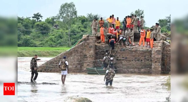 done: arunHyderabad: The devastating floods that hit Telangana on Aug 27 continue to wreak havoc across several districts. On Friday, authorities in Kamareddy recovered the body of 43-year-old Gopal Raja, who was swept away in the overflowing Sangameshwar stream near his village in Domakonda. His body was found two days later in nearby agricultural fields. With his death, at least six people have lost their lives across Telangana due to the torrential rains and flash floods. Officials have urged residents across vulnerable districts to remain on high alert as water continues to be released from overflowing reservoirs and streams. People in Medak, Nizamabad, and Nirmal have been particularly cautioned. In Bhadradri Kothagudem, water levels in the Godavari river at Bhadrachalam reached 47.4 feet, just below the second warning level of 48 feet. The first flood warning remains in force. Rising waters in Medak Medak district faces serious flood risks as heavy inflows from Latur (Maharashtra) and Saigam (Karnataka) are entering the Singur project. District collector Rahul Raj said nearly one lakh cusecs of water are flowing into Singur, forcing an equal volume to be released downstream into the Manjeera river. He warned residents along the riverbanks to remain vigilant and urged cattle herders and fishermen to stay away. Inspecting flood-hit areas in Haveli Ghanpur mandal, the collector said that nearly five kilometres of road had been destroyed. Villages such as Rajupeta thanda and Koprayipalli reported unprecedented damage, with elders calling it the worst flood disaster in 50 years. Temporary repair works are underway to restore connectivity. Flood pressure at SRSP In Nizamabad district, collector T Vinay Krishna Reddy reviewed the situation at the Sri Ram Sagar Project (SRSP) in Pochampad. With inflows from multiple upstream barrages and projects, the reservoir is receiving 4.9 lakh cusecs of water. As of Saturday, the water level stood at 1,084 ft against its full level of 1,091 ft, holding 58.3 tmc of water out of a total capacity of 80.5 tmc.To regulate the massive inflows, authorities have opened 39 floodgates, releasing around six lakh cusecs downstream through canals and outlets. Residents in villages along the Godavari basin have been cautioned not to venture into the river for fishing, swimming, or farming. Monitoring has been intensified in Kodicherla, Chakrial, Savel, Tadpakal, Donchanda, and Gummiryal to prevent public access. In Nirmal district, collector Abhilash Abhinav cautioned residents of low-lying areas in the Basara Godavari catchment to stay alert as the river is flowing with unusual intensity. SDRF teams have been deployed, while police have been instructed to maintain round-the-clock picketing to stop people from entering flood-prone areas. At the Basara temple, officials were directed to clear stagnant water to prevent health hazards. Relief efforts in Kamareddy Kamareddy remains among the worst-hit districts. On Saturday, collector Ashish Sangwan announced immediate financial relief of ₹11,500 to each of the 48 households inundated by floods in GR Colony of Kamareddy town. A survey is also being carried out in the Housing Board Colony to assess damages. In Tadwai mandal, the collector directed the local tahsildar to provide ₹5,000 in emergency assistance to each affected household. As floods continue to disrupt lives across Telangana, district officials are balancing relief efforts with the constant challenge of managing heavy inflows into rivers and reservoirs. With more rains forecast, authorities have urged the public to remain cautious and avoid risky areas until the situation stabilises.