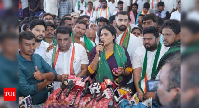 Vijayawada: Andhra Pradesh Congress Committee (APCC) president Y S Sharmila Reddy on Monday made a significant remark about her son Raja Reddy’s possible entry into politics, saying he would step into public life ‘when the need arises’. The statement came during her visit to the onion market yard in Kurnool, where she was accompanied by her son. Before the tour, Raja Reddy sought the blessings of his grandmother Y S Vijayamma.During the visit, Sharmila interacted with farmers and expressed serious concern over the steep fall in onion prices. She highlighted the difficulties faced by cultivators, pointing out that the cost of cultivation per acre ranges between Rs 80,000 and Rs 1.2 lakh, but farmers were being forced to sell their produce at a fraction of the investment.Sharmila said that at present, farmers were not even getting Rs 600 per quintal in the market, compared to last year’s price of Rs 4,500. She criticized the situation where some traders were reportedly offering as low as Rs 300 per quintal. According to her, the absence of a minimum support price (MSP) has already led to distress, with incidents of farmers attempting suicide.Accusing the government of neglect, Sharmila alleged that despite multiple assurances, the promised support for onion growers was never fulfilled. She recalled that farmers were previously told they would receive a differential amount as compensation but claimed that not a single farmer had received it in their bank accounts.“Farmers cannot be cheated year after year,” she said, stressing that justice can only be ensured if the govt fixes an MSP of Rs 2,500 per quintal for onions. She further stated that reviews and promises were not sufficient and urged chief minister N Chandrababu Naidu to take immediate measures to protect the interests of onion farmers.