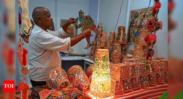 Vijayawada: The Gandhi Shilp Bazaar and Lepakshi Handicraft Design Competition began in Vijayawada this week, featuring the works of 40 artisans and weavers from across the country. The week-long event, held at Amma Kalyana Mandapam, is attracting large crowds and highlighting India’s diverse craft traditions.The exhibition displays a wide range of handmade works, including wood carvings, crochet lace, Thanjavur paintings, leather puppets, rugs, durries, and imitation jewellery. One of the participants, V Chinna Anjaneyulu, a leather puppet artisan from Narasaraopet, said: “Our craft is our identity and events like this give us hope to keep it alive.”A key highlight of the expo is the Lepakshi Handicraft Design Competition Exhibition, which focuses on innovation within traditional crafts. Entries from five categories — Kondapalli, Etikoppaka, wood carving, leather puppets, and Kalamkari block printing — are being judged by experts from the National Institute of Design (NID), the Craft Council, DC Handicrafts, and Andhra Pradesh Handicrafts Development Corporation (APHDC). Winners will be announced on Sept 12, with gold, silver, and bronze medals, along with cash prizes worth Rs 2.5 lakh, to be presented to the top artisans.Speaking at the event, special chief secretary, handlooms & textiles, industries and commerce department R P Sisodiya praised the initiative for both preserving heritage and opening new opportunities. “Every handcrafted piece carries the story of our culture, tradition, and resilience. It is our duty to preserve and promote these crafts for future generations,” he said, encouraging youth to explore traditional skills.APHDC vice chairman and managing director Vishwa Manoharan described the exhibition as a landmark effort to connect artisans with society and instil renewed pride in Andhra Pradesh’s craft heritage.