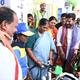 Narayanpet Drdo Mogulappa and Petrol Station Manager Selam Chandrakala with the staff members. | Photo Credit: Ramakrishna G.