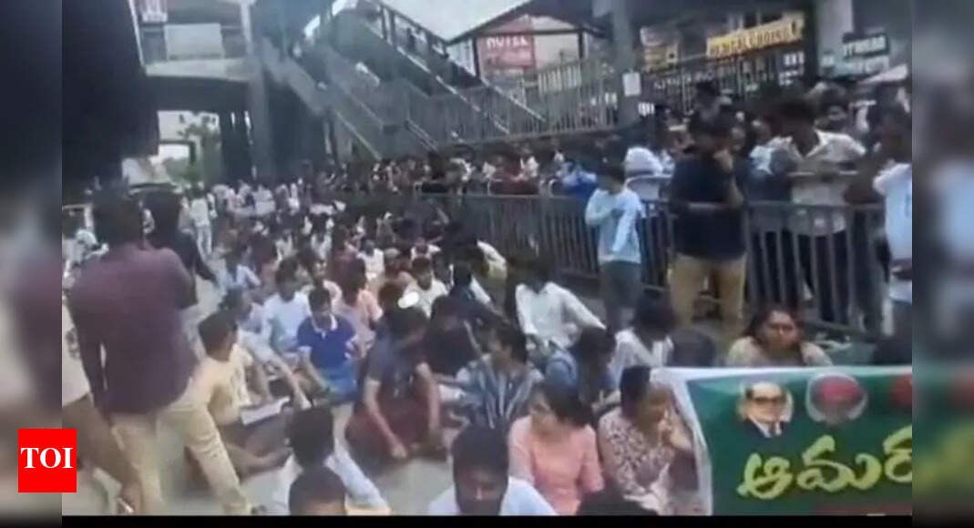 Hyderabad: Demanding the release of annual job calendar for 2025-26, several govt job aspirants staged a protest at Dilsukhnagar Metro Station in the city on Wednesday afternoon. The protest led to heavy traffic congestion before the protestors were dispersed by local police.Carrying placards and banners reading “We want justice,” the job aspirants raised slogans, demanding the govt release the job calendar at the earliest. They expressed frustration over the uncertainty surrounding the future of jobs.“The protestors took out a rally and sat on the roads for some time. However, there was no violence,” said a senior officer from the Saroornagar police station.Last year, the Telangana govt released the job calendar in Aug. Reports suggested that the govt was set to release the job calendar for 2025-26 in June, aiming to fill vacancies across various departments. The move came after a prolonged delay in implementing the previous job calendar for 2024-25, which was released in Aug 2024 due to the SC sub-categorisation issue.