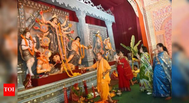 Hyderabad: Durga Puja in Hyderabad burst to life on Sunday with the rituals of ‘Shashti’, ushering in five days of devotion, colour, and celebration. From Gachibowli to Sainikipuri, towering pandals adorned with intricate idols of Goddess Durga have transformed neighbourhoods into festive hubs, drawing a huge number of devotees.At Gachibowli, the Utsaab Cultural Association created a village hut-style pandal illuminated with more than 50 lanterns. “Our Durga idol is designed in folk art. The rustic design stands out amid the modern IT hub, offering devotees a glimpse of Bengal’s rural charm. The idea is that Maa is coming from the village to the city to stay with us,” said general secretary Indranil Aditya, as devotees thronged the venue.In Miyapur, the Cyberabad Bangali Association chose ‘pattachitra’, one of Bengal’s oldest and most intricate art forms, as its central theme. Breaking away from the convention of depicting Goddess Durga in her warrior form, the association portrayed her as ‘Shantiroopani’ — a peaceful manifestation also known as Uma. “Usually, Durga idols are shown with weapons, but this time we wanted to depict a gentler, maternal form of the goddess,” said general secretary Subhro Mukherjee. The choice reflects a conscious attempt to remind devotees that Durga is not only a destroyer of evil but also a nurturer of peace.The Bangiya Sanskritik Sangha, one of Hyderabad’s oldest Puja organisers, is marking its 60th year with grandeur. Their pandal is a striking replica of Jaipur Palace, blending Rajasthani architecture with Bengali devotion. “We have decked up our Durga idol in oriental style to mark the milestone year,” president Deepak Bhattacharya said. The association’s six-decade journey has made it a pillar of the city’s Bengali cultural landscape, and the palace-themed pandal underscores its tradition of grandeur and inclusivity.The Hyderabad Bangalee Samity, which has been hosting Durga Puja since 1942, is focusing on ‘nari shakti’ (women’s empowerment) this year. With over eight decades of history, the samity has consistently tied contemporary social themes to its celebrations. “We are pushing the idea of women empowerment through our festivities,” said general secretary Joy Kumar Dutta, noting how the message resonates with today’s generation while honouring tradition.Meanwhile, the Sarbojanin Durgotsav in Banjara Hills, now in its 52nd year, has taken a nostalgic turn with its ‘screen to books’ theme. In an age when children are glued to devices, the organisers have recreated the world of 1990s Bengali comic books. “Parents will relive their memories, while children may pick up a book or two,” said executive committee member Sanjay Bose.Adding to this year’s milestones, Hyderabad Kaali Bari is celebrating 50 years of Durga Puja. The temple’s pandal, steeped in tradition, has become a cultural hub where thousands gather to pray, enjoy performances, and share the festive spirit across generations. For the city’s Bengali community, this golden jubilee is not just about worship, but about continuity, belonging, and collective pride.