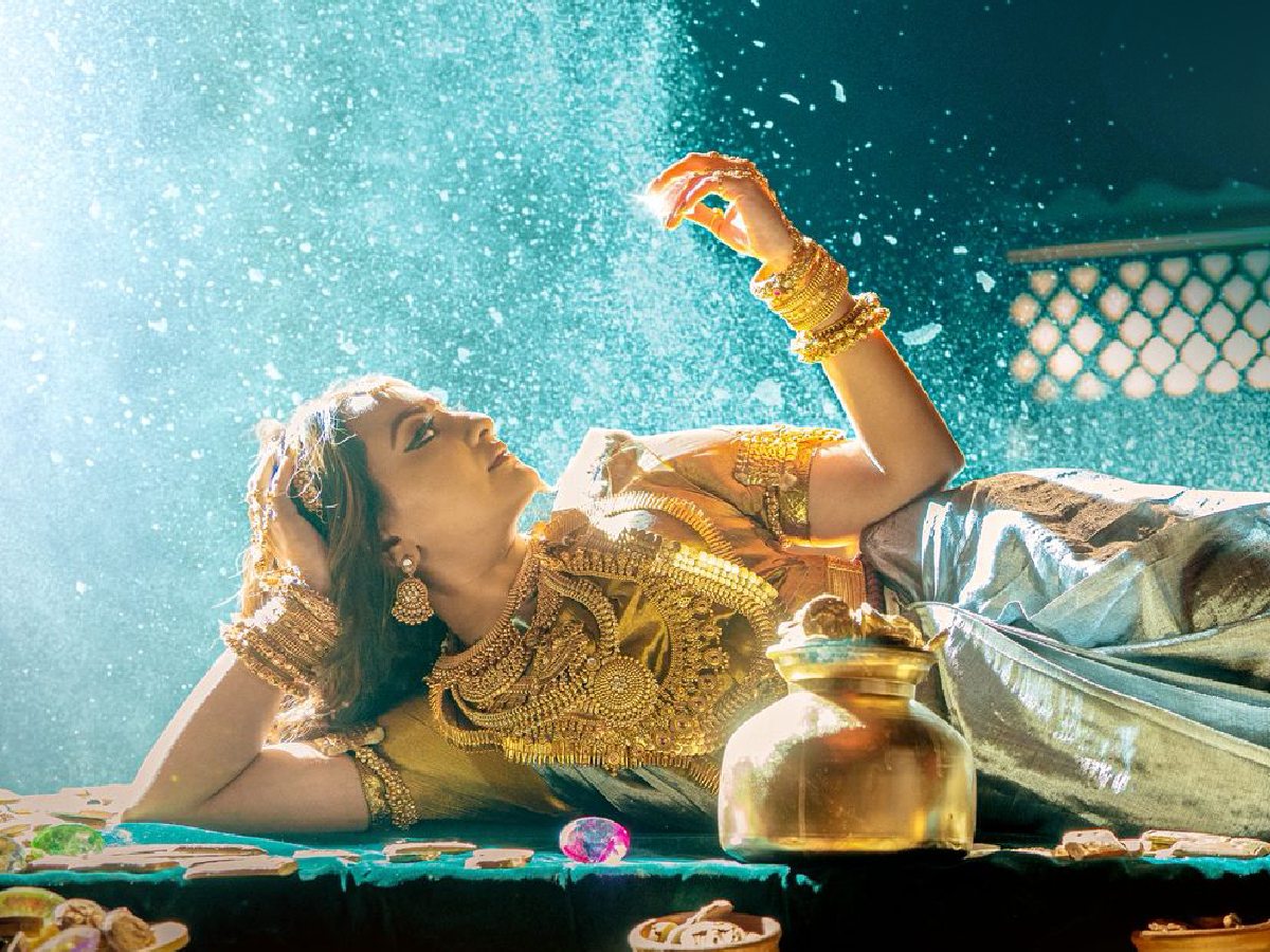 Sonakshi Sinha, in her first full-fledged Telugu role, is set to sizzle as a seductress, showcasing her dancing skills and glamorous screen presence. She will appear as Dhana Pisachi (a money-minded temptress) in a special song in “Jatadhara.”