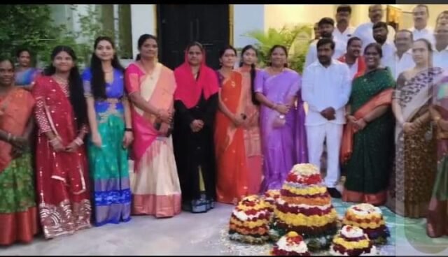 Suryapet: The Saddula Bathukamma festivities were celebrated with grandeur at the district headquarters of Suryapet. Former Minister and Suryapet MLA Guntakandla Jagadish Reddy took part in the celebrations, extending Bathukamma greetings to women across Telangana.