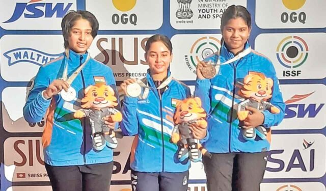 Ojasvi Thakur emerged as the champion grabbing gold medal. while Hrudya Shri Kondur secured silver and Shambhavi S Kshirsagar completed the all-India podium with 229.4