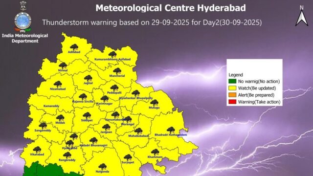 Home NEWS Thunderstorm forecast for 27 Telangana districts on September 30