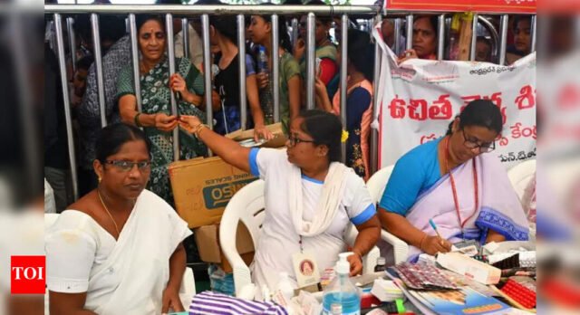 Vijayawada: As lakhs of devotees prepare to celebrate Dasara with pomp and devotion, another group quietly powers the festival’s machinery. From sanitation workers and police constables to street vendors, paramedics, and volunteers, these unsung heroes ensure the grandeur of Navaratri at Kanaka Durga temple and across Andhra Pradesh runs smoothly.From sanitation workers sweeping away heaps of garbage, to police constables standing guard for 12-hour shifts, street vendors feeding the crowds, young volunteers assisting specially abled and elderly people, and paramedics rushing to emergencies — these unsung heroes form the unseen workforce of Dasara.Every morning, before the first batch of devotees climbs Indrakeeladri hill, sanitation workers are already on duty. “By midnight the way is littered with plastic covers, food plates, and flowers. We work till dawn to clear it,” says Lakshmi, a municipal worker. Yet many do so without gloves or masks. “People see only the decorations, not our work,” adds another.Traffic jams and stampede fears keep police on their toes. Over 4,500 personnel are deployed in Vijayawada alone. A constable posted at a temple barricade hasn’t been home for three days. “My children are also celebrating Dasara, but I can’t join them. Duty is our festival,” he says. Senior officers admit the stress is high but insist the safety of lakhs of devotees comes first.For thousands of small traders, Dasara is survival. Toy sellers, flower vendors, and food stall owners depend on these ten days to recover losses. “We earn enough now to pay school fees for my children,” says Chittikomma Murthy, who sells bangles near the temple.Emergency medical teams have been stationed at temple entrances and bus stations. Fainting, dehydration, and minor injuries are common. “People fast and then walk for hours in the heat. We treat dozens every day,” says K Hema Nagamani, a health supervisor from a government medical camp. She says each day we handle around 180 cases.Akhil, a youngster serving as a volunteer, told TOI that “most devotees only see the goddess and the celebrations, but they don’t notice the people working behind the scenes. As volunteers, we guide queues, offer water, and calm frustrated pilgrims. It’s exhausting, but serving the goddess and helping devotees is our way of celebrating Dasara.”As the Vijayawada skyline glitters with lights and the chants of “Jai Durga” echo on the hill, the festival owes as much to the goddess as to the countless unseen hands that keep faith, order, and celebration alive.