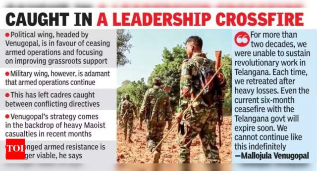 Hyderabad: A deepening rift within the Communist Party of India (Maoist) has come into the open, as the party’s political chief, Mallojula Venugopal, also known as Sonu or Abhay, is believed to have challenged the Telangana state committee over its insistence on continuing armed operations.A letter purportedly issued by Abhay has intensified tensions between the party’s political and military wings, exposing cracks in the underground organisation that could redefine its future strategy.According to Telangana police’s Special Intelligence Branch (SIB) sources, Venugopal is not alone. Senior leaders, including Ashanna alias Thakkalapalli Vasudeva Rao and members of the east regional bureau (ERB) operating in Jharkhand, have reportedly expressed support, highlighting the widening divide between political and military lines.The military wing, led by Devji alias Tippiri Tirupati, continues to advocate prolonged armed resistance, leaving cadres caught between conflicting directives, it is alleged.In his purported statement from Hyderabad, Abhay condemned the Telangana committee for rejecting his call for a “temporary cessation of armed struggle,” describing their stance as “politically narrow” and inconsistent with the party’s evolving needs. The statement followed a Sept 19 letter from Telangana committee spokesperson Jagan, who is believed to have argued for continuing armed actions.“Jagan need not emphasise that the decision was not unanimous. His hurried statement itself goes against party organisational norms,” Abhay is believed to have said. He noted that while some central committee members rejected dialogue in Nov 2024, the Telangana unit had later indicated readiness for talks in March 2025, revealing internal contradictions.Rejecting Jagan’s suggestion that he could surrender, Abhay reportedly remarked, “Speaking about my surrender instead of addressing the political content of my appeal shows immaturity. My 22-page appeal to cadres summarised the politburo’s August 2024 circular, which we failed to implement over the past year. The reality is that a temporary suspension of armed struggle has become inevitable.”Call for strategic adaptationAbhay is also believed to have argued that the protracted people’s war is no longer sustainable. “For more than two decades, we were unable to sustain revolutionary work in Telangana. Each time, we retreated after heavy losses. Even the current six-month ceasefire with the Telangana govt will expire soon. We cannot continue like this indefinitely,” he reportedly said.He seemed to have clarified that his previous release with a personal photograph and email address aimed to avoid confusion, dismissing speculation of police links. “If I quit, Jagan would have been the first to state it,” he reportedly said.Urging cadres to focus on building mass support rather than armed actions, Abhay is believed to have advised Jagan to revisit the Andhra Pradesh state committee’s 1977 resolution that once guided the party’s reassessment.“Ceasefire proposals by leaders in Telangana, Jharkhand, and others were aimed at saving the party, not personal survival. We must adapt to changed conditions and strive for the revival of the Telangana movement,” Abhay reportedly said, signalling a potential shift in the party’s decades-old approach.