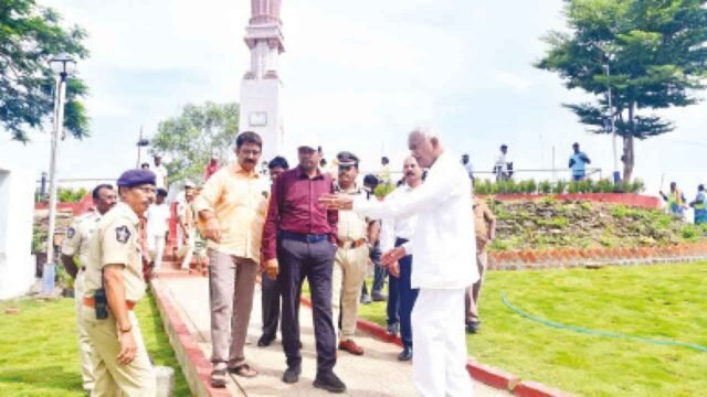 Ahead of the Chief Minister’s visit, NTR District Collector Dr G Lakshmisha and Police Commissioner SV Rajasekhara Babu, along with senior officials and the Gandhi Hill Development Committee, conducted an inspection of the arrangements on Wednesday. They reviewed the security, infrastructure, and public facilities to ensure the smooth conduct of the programme.