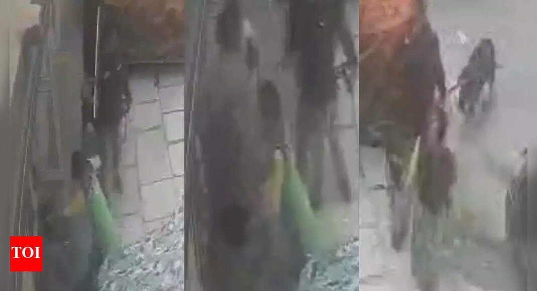 HYDERABAD: A 60-year-old woman was allegedly assaulted by a police constable’s sister and wife in his presence in Madannapet, Hyderabad, after she objected to his dog defecating outside her house.The incident, which occurred on Tuesday around 11:10 am, came to light on Wednesday. It was captured on CCTV, leading to charges against the constable’s family.According to Madannapet police, the complainant, identified as S Suwarna of the Mala community, confronted constable B Chandrakanth after his pet dog urinated near her house on her car. While the constable is attached to the Chikkadpally police station, the three were booked under the relevant sections of the Scheduled Castes and Scheduled Tribes (Prevention of Atrocities) Act, assault, and other sections of the Bharatiya Nyaya Sanhita.“On Tuesday morning, she questioned him about allowing the dog to defecate or urinate in front of her home and near her car, which initially led to a heated exchange. Following this, an aggressive Chandrakanth called his sister, Rajani, and then his wife, Annapurna. There is no past history between them,” said a sub-inspector from the Madannapet police. “He also abused, threatened and hurled some casteists slurs at her.”The official added that the constable’s sister and wife soon arrived at the scene and physically attacked Suwarna.CCTV footage circulating on social media initially shows that while Suwarna tried to escape, one of the women (Chandrakanth’s sister) slapping and punching Suwarna on the face and head. The constable then handed her a plastic pipe and Rajani struck the elderly woman multiple times. The second woman (wife) joined shortly after and continued the assault. The visuals also show bystanders watching the incident unfold but failing to intervene or stop the attack. “The woman received multiple injuries on her head and face, along with other bodily injuries. She was taken for treatment and is now in a stable condition,” said the SI.The Madannapet police registered a case under BNS sections 115(2) (voluntarily causing hurt), 118(1) (causing hurt or grievous hurt using dangerous weapons), 352 r/w 3(5) (intentional insult) and are investigating further.