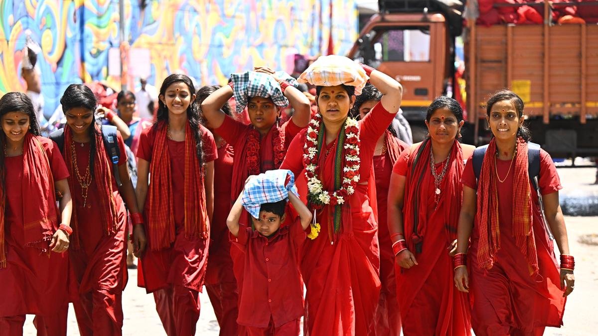 On Friday, a day after Vijaya Dasami, massive crowds of Bhavani devotees thronged the temple, particularly from the North Andhra districts. Clad in crimson attire, devotees carrying the traditional irumudi—twin-socket bags filled with rice and offerings—walked barefoot to the shrine, chanting the Goddess’s name.