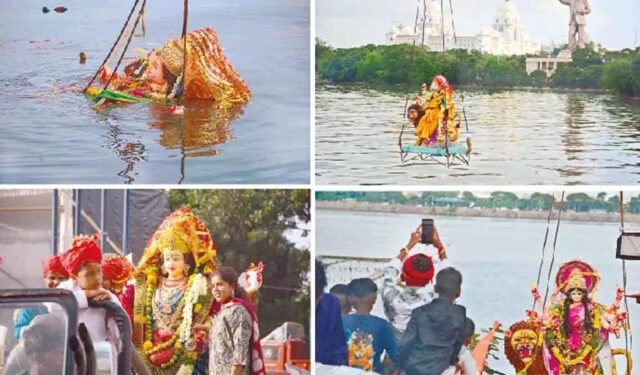 Hyderabad: Tension prevailed for a while at Chaderghat on Saturday night after some persons allegedly threw eggs on Durga idol immersion procession.
