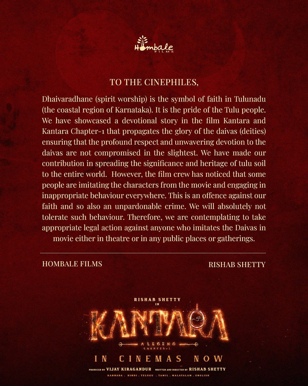 Hombale Filmsone of the most happening and successful production houses, has been making even decades-old studios across India jealous with their scale of filmmaking, success, and the goodwill they’ve built. The team posted a warning tweet related to their latest release Kantara Chapter 1, but for some reason, they quickly deleted their press statement. Check out what they had posted below.