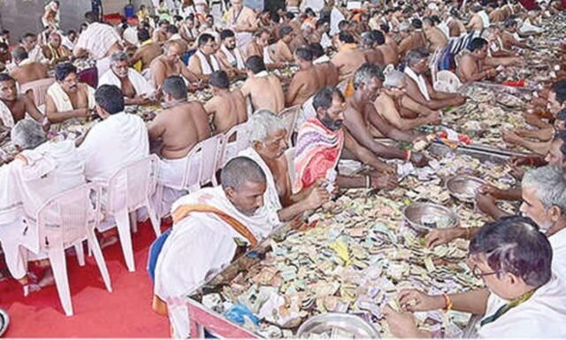 Vijayawada: After the conclusion of the 11-day Dasara Sharannavaratri celebrations at the Mallikharjuna Maha Mandapam at Sri Durga Malleswara Swamy Varla Devasthanam atop Indrakeeladri here, the temple authorities began the counting of Hundi collections on Monday.
