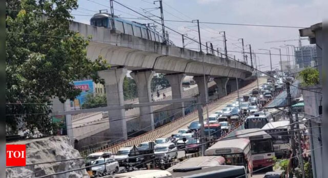Hyderabad: Hyderabad witnessed heavy traffic congestion on Monday morning, as vehicle movement along the highway outside the Outer Ring Road (ORR) came to a standstill for hours. The post-Dasara rush after the long weekend added to the gridlock, forcing commuters to leave their vehicles behind and head to nearby Metro stations, particularly those located near major railway and bus terminals.According to Metro officials, the LB Nagar station alone recorded a footfall of over 25,000, nearly 10,000 more than its usual daily average. To control the crowd, station authorities briefly halted the use of escalators and elevators, resulting in passengers waiting nearly two hours just to reach the platforms. “It was almost impossible to move inside the station. People were standing shoulder to shoulder, and the queue for tokens stretched all the way outside, to the footpath,” said Ravi Kumar, a commuter returning from his hometown to Mettuguda.Another passenger, Divya D, who had to leave her car at LB Nagar due to the traffic, said, “There was hardly any breathing space on the platforms. It took me almost 30 minutes just to get past the ticket scanner. Even the trains were overcrowded; many of us had to skip two to three trains before we could finally board one, only to commute standing.”Other busy stations — including MGBS, Raidurg, Secunderabad East, and Mettuguda — also reported a noticeable rise in passenger footfall as people returned to the city by bus and train. “While we were taken aback by the crowds, we could bring it under control by evening,” a senior official told TOI.Meanwhile, a massive traffic jam was seen on the Hyderabad-Vijayawada national highway, where vehicles were stuck for nearly four hours before movement slowly resumed. According to Srinivasulu, deputy commissioner (traffic), LB Nagar, an accident near Chityal brought traffic on the highway to a grinding halt. “The accident caused a gridlock, and as vehicles began moving slowly, the backlog entered the city during peak hours, merging with Hyderabad’s regular traffic and worsening the snarl. The situation was brought under control, and the congestion was cleared within an hour,” he told TOI.