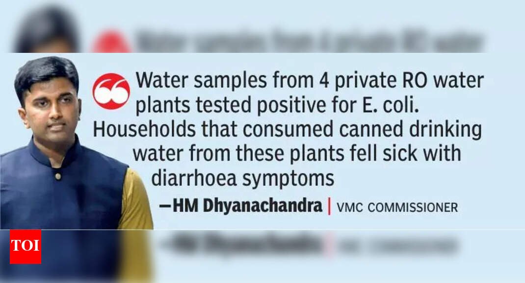 Vijayawada: Nearly a month after over 350 residents fell ill in New RR Pet due to a diarrhoea outbreak, the Vijayawada Municipal Corporation (VMC) has confirmed that contaminated drinking water from four private RO plants was the source. The plants, located in the 57th ward, supplied canned water that tested positive for E. coli bacteria.VMC Commissioner HM Dhyanachandra told the council on Wednesday that water samples from the RO units failed tests conducted both by the VMC and the Guntur regional lab. Households consuming water from these plants reported diarrhoea symptoms.“Water samples collected from the four private RO water plants tested positive for E. coli bacteria. Households that consumed canned drinking water from these RO plants fell sick with diarrhoea symptoms,” VMC Commissioner HM Dhyanachandra said while addressing the council floor on Wednesday.“The water samples collected from the RO water plants tested positive for E. coli bacteria during the tests conducted by the VMC as well as in the testing done in the Guntur regional lab,” the VMC chief told council members during a short discussion on the diarrhoea outbreak in New RR Pet in the council meeting.The municipal corporation also tested water from pipelines across the 57th ward and 11 connected wards. No contamination was found in the municipal supply, ruling out pipeline water as the cause.The commissioner added that the four RO plants were operating without valid trade licences or updated water testing reports. All four units were seized immediately after the contamination was confirmed.During the council discussion, members from across party lines raised broader concerns about municipal water quality. Issues flagged included discoloured water, foul odour, pipeline leakages, and drainage mixing due to parallel water and underground drainage lines.