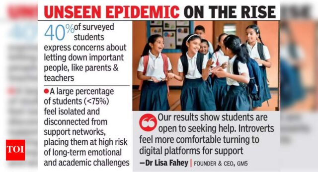 Hyderabad: More than 60% students in the age group of 10 to 18 years have sleep difficulties, and 70% have trouble focusing and concentrating in class, revealed a survey, highlighting a growing mental health crisis among schoolchildren.Conducted by GM5 (Give Me Five), an Australia-based psychological wellness platform, the study also reveals that nearly 24% of school students show signs of psychological distress, with 6% to 10% falling in the high or critical range that requires immediate support. About 5,000 students, of which 2,464 are from Telangana, were part of the survey. Another 2,536 students from Karnataka participated in the survey.“We want to bring visibility to these silent struggles. The insight from this study reaffirms our belief that proactive, data-driven approaches are vital to nurturing emotionally resilient students and communities,” said Brendan Fahey, founder and chairman, GM5, adding that the report highlights an alarming surge in psychological distress among govt and private school students.The survey also revealed that around 40% of students expressed concerns about letting down important people in their lives, such as parents and teachers. Less than 75% of students feel isolated and disconnected from support networks, placing them at high risk of long-term emotional and academic challenges.The most dominant and recurring stressors were the crippling fear of letting parents down, coupled with the widespread inability to sleep or concentrate, the survey added.“Our results highlight that students are open to seeking help. Introverts or those concerned about stigma feel more comfortable turning to digital platforms and mental health applications for guidance and support,” said Dr Lisa Fahey OAM, founder & CEO, GM5.The survey findings point to the importance of regular well-being checks in schools, underscoring the critical value of early screening, better collaboration between students, teachers, and parents, and targeted support for common challenges like sleep, focus, and stress management among youth.