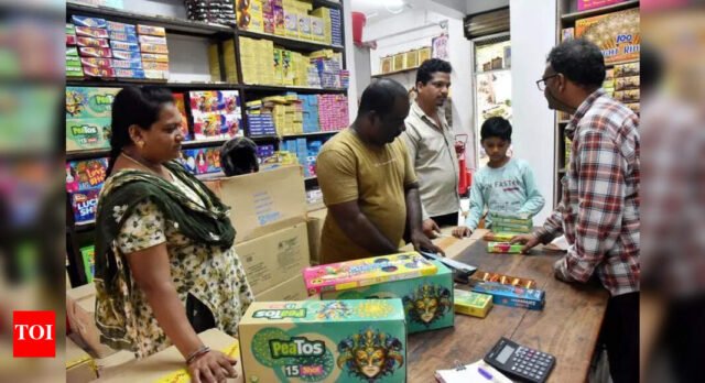 Hyderabad: As Diwali approaches, the demand for eco-friendly green crackers is lighting up markets across Hyderabad. Traders are reporting a significant jump in sales compared to previous years, as more people are consciously opting for fireworks that emit around 40% less pollution. The shift follows sustained awareness campaigns by environmental groups and civic authorities urging people to celebrate responsibly.Retailers at major hubs such as Begum Bazaar and the Old City say inquiries for certified green crackers—approved by the National Environmental Engineering Research Institute (NEERI)—have nearly doubled this festive season. “Last year, people were still hesitant because they weren’t sure what green crackers were. This time, most customers ask for them first,” said Srikanth DS, a trader who has been selling crackers for over a decade.Retailers note that supply has improved this year, though prices remain about 15% to 20% higher than traditional fireworks due to the cost of eco-friendly raw materials. “Customers don’t mind paying a little extra. They say they want to enjoy Diwali without guilt,” said Mohammed Iqbal, a vendor at Abids.New varieties such as smokeless flower pots, eco-rockets, and sound-controlled sparklers have also caught the attention of customers, particularly families with children. Hari Krishna, another vendor from the Old City, said demand has doubled in the past week. “Customers are asking for items such as eco-rockets, low-decibel bombs, and smokeless flower pots. Even though prices are slightly higher, people prefer them because they don’t cause coughing or irritation.““Almost all vendors have stocked up only green crackers this season,” said P Venugopal, president of the Telangana Fire Workers Dealers Association (TFWDA). “In just one week, our stocks from hub manufacturers were exhausted. Demand for green crackers has increased by nearly 30% compared to last year.” He added that while prices initially rose by 2% due to higher labour costs, the unexpected surge in demand led to further price hikes. Shoppers told TOI that green crackers have made their plans for celebrations safer and better. “This year, we wanted to celebrate Diwali without polluting the air. The smoke from traditional crackers would irritate our children and trigger respiratory issues. With green crackers, though a bit expensive, are worth it for the health of our children,” said Tejashwini Sarita, a resident of Ameerpet.Vishal Krishna, an IT professional from Gachibowli, said, “It’s been years since I’ve celebrated Diwali with crackers because of how unsafe they are. Green crackers have quipped my interest back into celebrating Diwali like it is supposed to.”