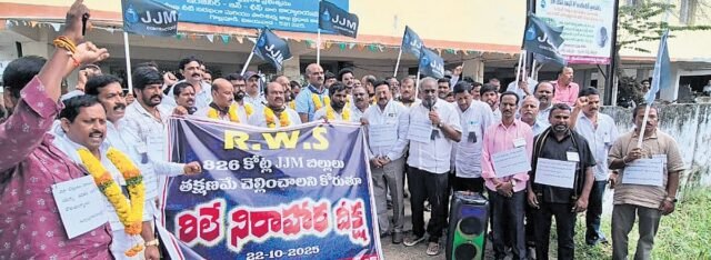 VIJAYAWADA: Demanding release of pending arrears, Navyandhra RWS Contractors Association observed a Relay Hunger Strike in Vijayawada on Wednesday.