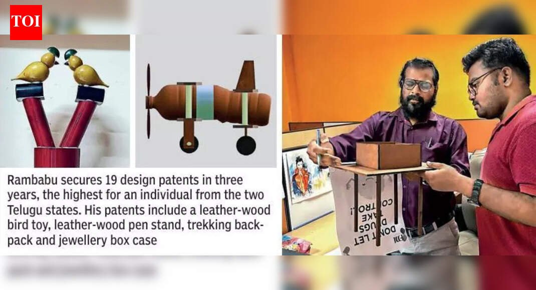 Hyderabad: Born into a family of bamboo artisans, a faculty member from the city’s Footwear Design and Development Institute (FDDI) has secured 19 design patents in three years, the highest for an individual from the two Telugu states. A first-generation academician, Rambabu Muppidi received his latest patent for a calabash bottle in the first week this month.He aims to bridge traditional craftsmanship with modern innovation and give a new life to several dying arts across the country, especially in Telangana and AP. He has documented more than 60 traditional art forms, and his design patents are being made available to artisans so they can create new products and improve their income. “As a child, I learned to weave bamboo baskets and other household materials from my grandfather. Later, as it became hard to survive by selling bamboo products, we shifted to making flexis and banners. Then we became engravers, earning a livelihood through stone carvings,” Muppidi told TOI. He said his parents were keen that all their children — three sons and a daughter — got an education so the kids wouldn’t have to struggle the way they did.Exposed to various art forms since childhood, Muppidi earned a PhD in design that helped him secure several patents. “I filed 37 design patent applications since I joined FDDI as a contract faculty in 2022. Most of my designs are created with the idea that they can be adapted to various art forms and be of use to artisans,” said the 43-year-old, whose patents include toys, decorative pieces and leather accessories.A native of Jangareddygudem in AP, he wants to create more designs and start an industry with govt support to take art forms to the next level, and ensure that younger generations do not move away from them in search of better opportunities.“I have already conducted several workshops to teach artisans about designing. I could take this forward if the govt helps and do my bit for skill education,” said Muppidi, who has worked as an assistant art director on various films and also as schoolteacher. Later, he became a professor.His patents include a leather-wood bird toy, leather-wood pen stand, trekking backpack and jewellery box case.