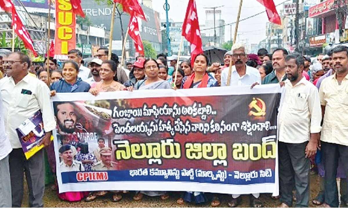 Nellore: The district bandh called by Left parties condemning the murder of CPM leader and Praja Natya Mandali (PNM) Nellore Rural Mandal vice-president K Penchalaiah was partially successful across the district.