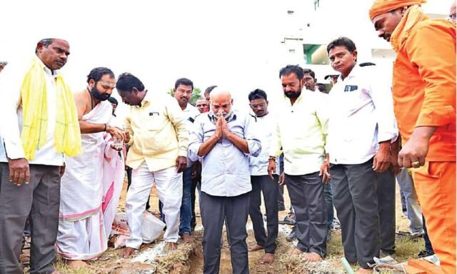 Vijayawada: Government Whip and Gannavaram MLA Yarlagadda Venkat Rao laid foundation stones for development works worth Rs 1.10 crore in Ambapuram village of Vijayawada Rural mandal in NTR district on Wednesday. These projects include 1.28-lakh-litre capacity water tank constructed with Rs 78 lakh DMFT funds, a cricket practice box funded jointly by the Gram Panchayat and Mandal Parishad with Rs 6 lakh each, and five cement roads developed with Mandal Parishad allocations of Rs 20.60 lakh.
