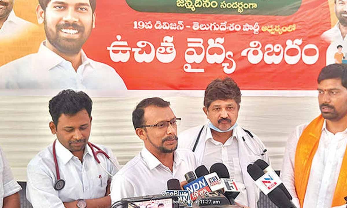 Nellore: Medi coverHospitals organised a free mega medical camp and cancer awareness programme on December 21st at the M R Building in Magunta Layout, Nellore, under the leadership of Nookaraju Madan Kumar Reddy, TDP Cluster in-charge for division 18, 19 and 20 of Nellore city.