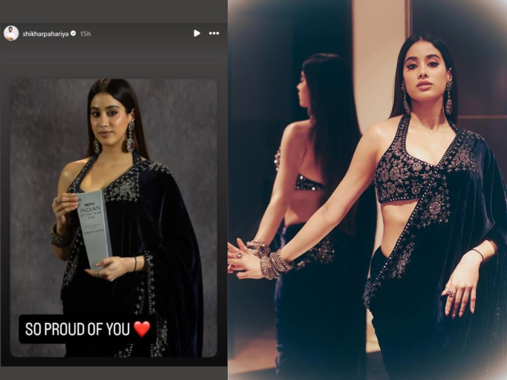 Reacting to her photo holding the award trophy, Janhvi Kapoor’s rumoured boyfriend, Shikhar Pahariya, congratulated her with a message. “So proud of you (heart emoji,” he wrote.