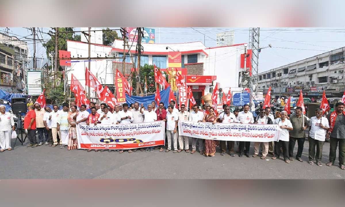 As part of a nationwide protest call given by the CPM, CPI, and other Left parties, a large-scale demonstration was held at the Mahatma Gandhi statue near the Head Post Office in One Town in Vijayawada on Monday. The protest was against the Centre’s move to replace the Mahatma Gandhi National Rural Employment Guarantee Act (MGNREGA) with the newly proposed VB- G RAM G Bill, 2025. Addressing the gathering, CPM State Secretariat member Ch Babu Rao alleged that the BJP-led Union government was deliberately removing the names of national leaders associated with the freedom struggle.