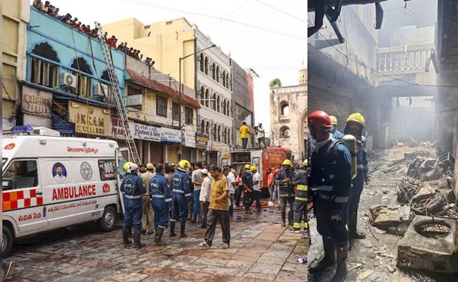 The incident occurred at Gulzar Houz near the historic Charminar. The dead include two children and four women.